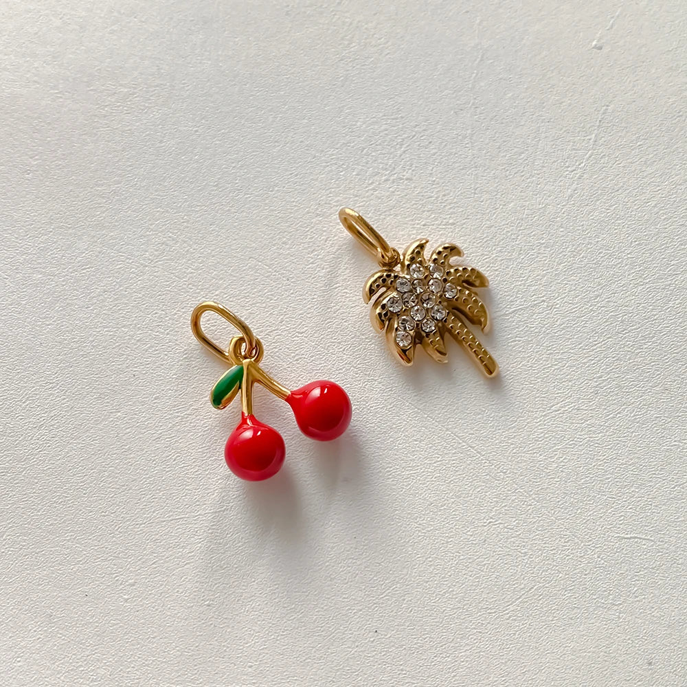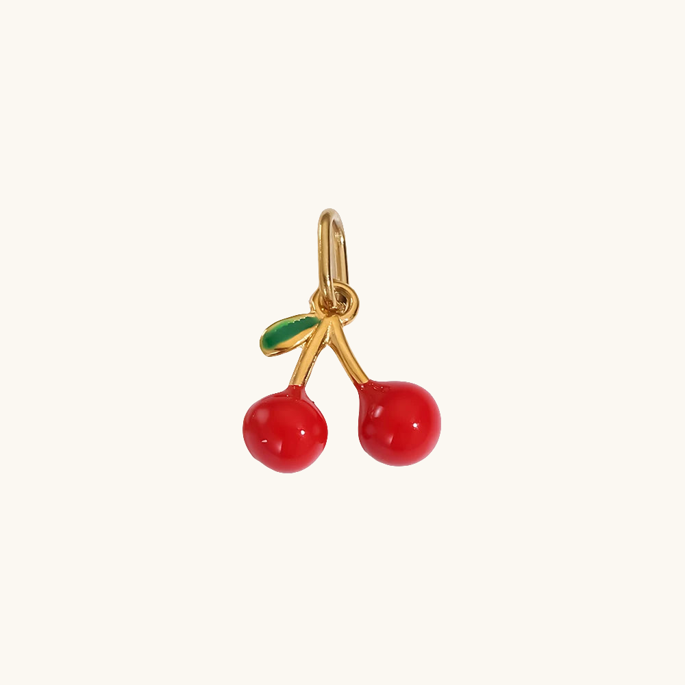Sweet cherry pendant by Fascina made of stainless steel with a 14K gold finish and red enamel. A fruity piece of jewelry measuring 9x10mm for necklaces. Discover it now!